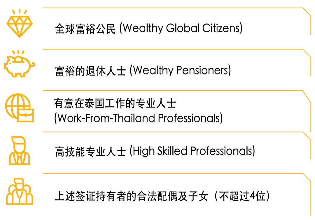 除一般旅游、商务等短期签证外,泰国也有以下几种针对工作、投资的中长期签证,以及今年九月份新颁布的长期居留签证(Long Term Resident Visa,坚称LTR)。